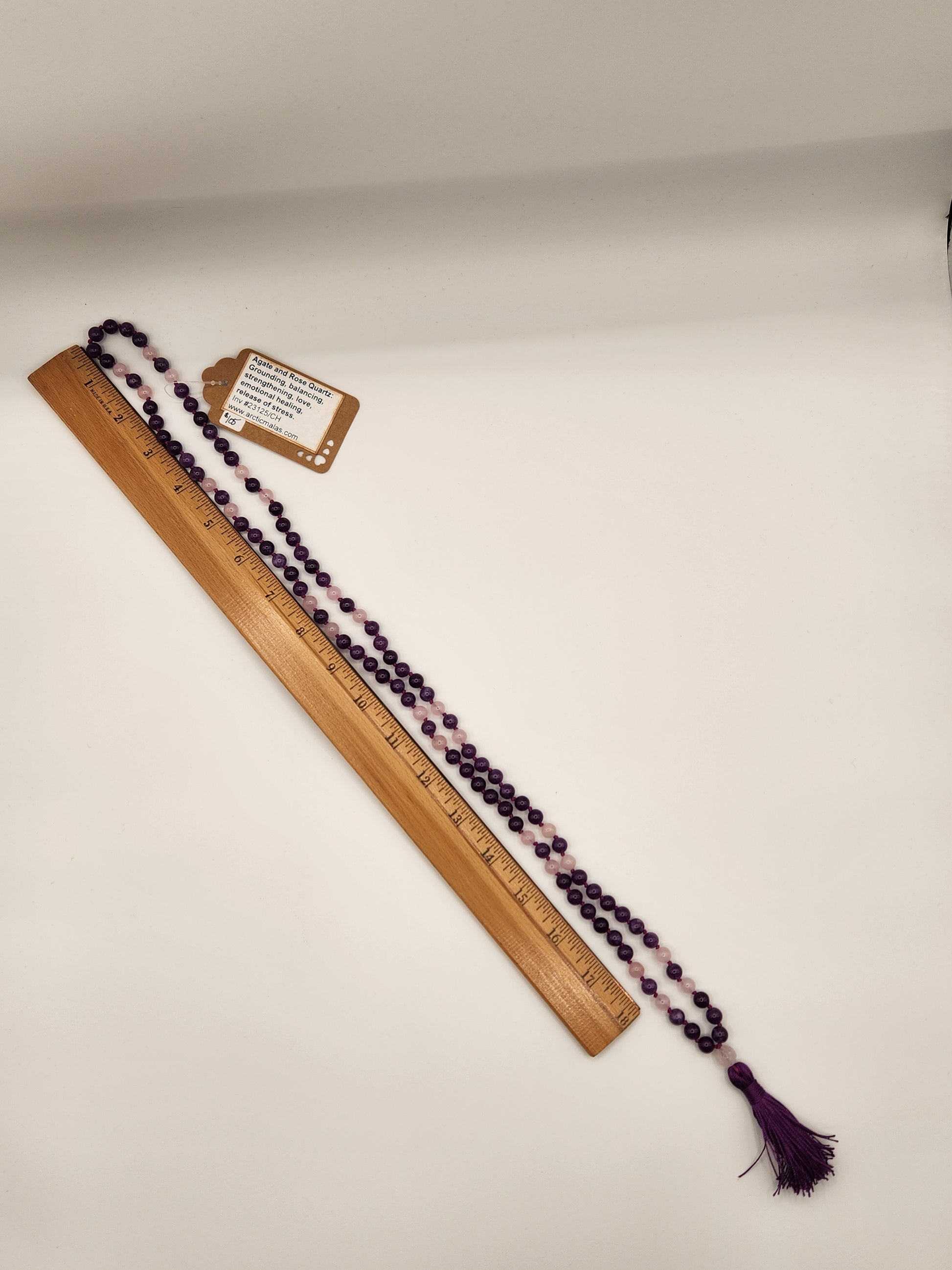Purple Agate and Rose Quartz: Grounding, balancing, stabilizing, strengthening, love, gentleness, emotional healing, release of stress, uniting with the Divine. Inv #23125/CH